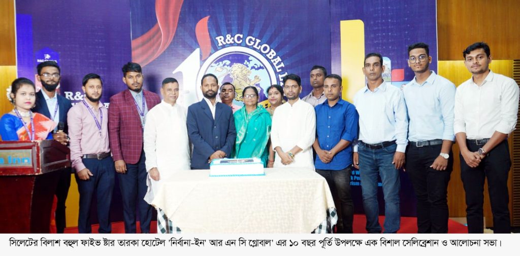 সুপার বাংলা প্রতিনিধি: সিলেটের বিলাশ বহুল ফাইভ ষ্টার তারকা হোটেল ‘নির্বানা-ইন’ এ অনুষ্ঠিত হয়ে গেলো ‘আর এন সি গ্লোবাল এর ১০ বছর পূর্তি উপলক্ষে এক বিশাল সেলিব্রেশান ও আলোচনা সভা গত ৫ই আগস্ট শুক্রবার অনুষ্ঠিত হয়েছে।