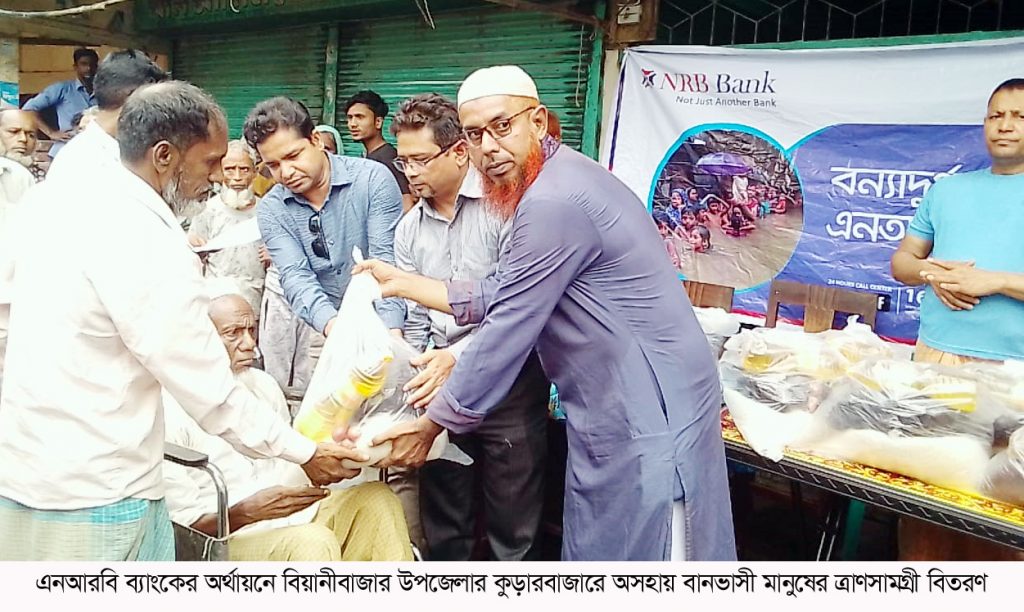 নজরুল ইসলামের সভাপতিত্বে ও আবু কাওসার এর পরিচালনায় অনুষ্ঠানে প্রধান অতিথি হিসেবে উপস্থিত ছিলেন এনআরবি ব্যাংক মেডিকেল রোড শাখার ম্যানেজার মোঃ ফয়জুল কবির চৌধুরী। এ সময় তিনি বলেন, ভয়াবহ বন্যায় অসহায় দুর্গত মানুষের মধ্যে এনআরবি ব্যাংক সবসময় মানুষের কল্যানে কাজ করে আসছে। ব্যাংকের ভাইস চেয়ারম্যান মোহাম্মদ জামিল ইকবাল সবসময় বন্যার্থদের খোঁজ-খবর নিচ্ছেন এবং তাদের সহযোগিতা করার জন্য নির্দেশ প্রদান করেছেন। তিনি বলেন যতদিন বন্যা থাকবে ততদিন এনআরবি ব্যাংকের ত্রাণ কার্যক্রম অব্যাহত থাকবে। এসময় তিনি সমাজের বিত্তবানদের এগিয়ে আসার আহ্বান জানান।