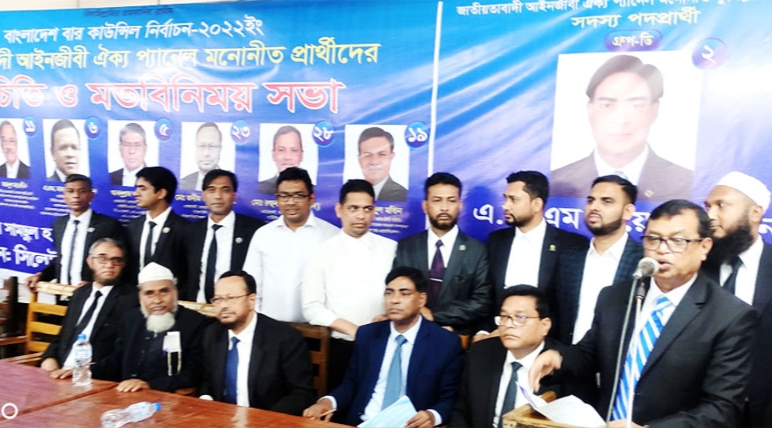 আসন্ন বার কাউন্সিল নির্বাচনে জাতীয়তাবাদী আইনজীবী ঐক্য প্যানেল মনোনীত প্রার্থীদের পরিচিতি ও মতবিনিময় সভা অনুষ্ঠিত হয়েছে।