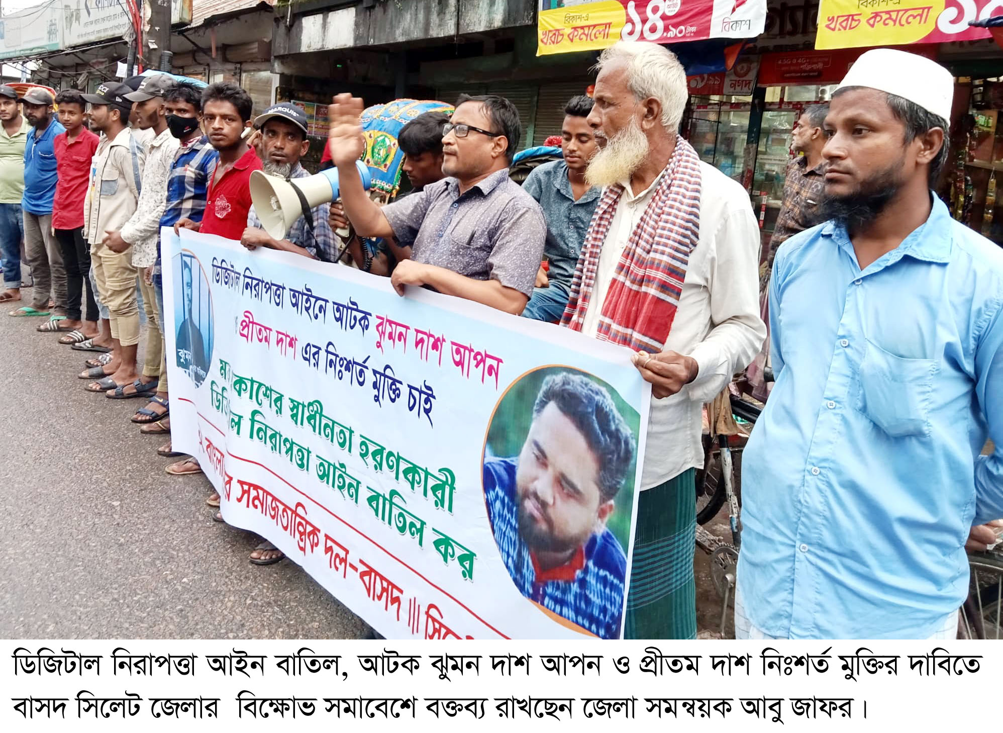 আবু জাফর অবিলম্বে ডিজিটাল নিরাপত্তা আইনে গ্রেপ্তারকৃত শাল্লার ঝুমন দাশ আপন ও শ্রীমঙ্গলের প্রীতম দাশ এর নিঃশর্ত মুক্তি ও নিবর্তনমূলক কালো আইন ডিজিটাল নিরাপত্তা আইন বাতিলের জোর দাবি জানান।