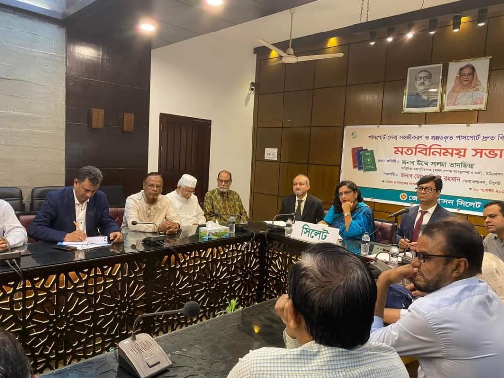 আবুল কালাম: ইমিগ্রেশন ও পাসপোর্ট অধিদপ্তরের অতিরিক্ত মহা পরিচালক উম্মে সালমা তানজিয়া বলেছেন দেশের মানুষের কাছে দ্রুত সেবা পৌঁছে দেবার জন্য মাননীয় প্রধানমন্ত্রী কাজ করে যাচ্চেন। তিনি ডিজিটাল বাংলাদেশ করেছেন এবং ভিশন শব্দের সাথে আমাদের পরিচয় করিয়ে দিয়েছেন,। বাংলাদেশ কে এগিয়ে নেবার একটা ভিশন নিয়ে আমরা কাজ করছি,পাসপোর্ট সেবা আরো সহজ করার জন্য সিলেটে আরো একটি পাসপোর্ট অফিস হবে, এবং কিছু দিনের ভিতরে ওসমানী আন্তর্জাতিক বিমানবন্দরে ই গেইট চালু করা হবে, আরো বলেন সরকার সকল তৈরি করা পাসপোর্ট পোস্ট অফিস বা অন্য কোন এজেন্সি কে দেওয়ার চিন্তা ভাবনা করতেছে, যাতে মানুষ সহজে পাসপোর্ট হাতে পায়, বৃহস্পতিবার ১০ ( নভেম্বর) সকাল সাড়ে ১০ টায় জেলা প্রশাসকের সম্মেলন কক্ষে পাসপোর্ট সেবা সহজি করন ও দ্রুত বিতনর শীর্ষক এক মত বিনিময় সভায়,তিনি এসব কথা বলেন।
